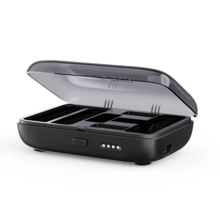 - Le microphone offre une autonomie allant jusqu’à 30 heures avec le boîtier de chargement, et le récepteur prend en charge le chargement pendant l’enregistrement lors de l’utilisation des adaptateurs USB-C ou Lightning.